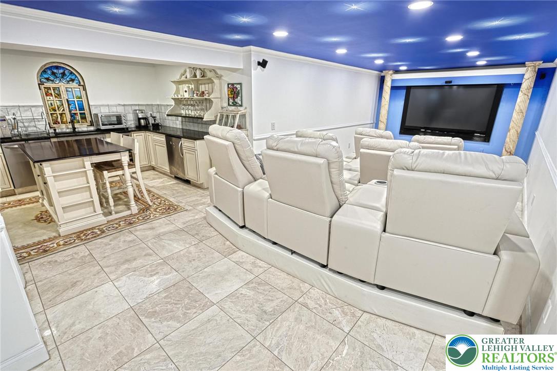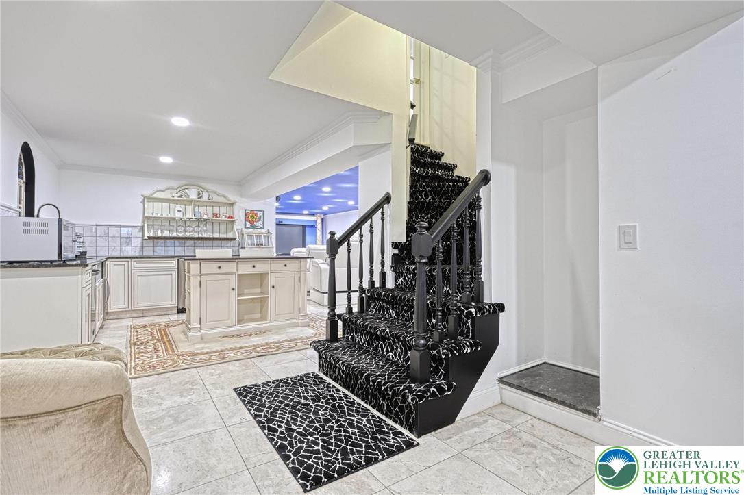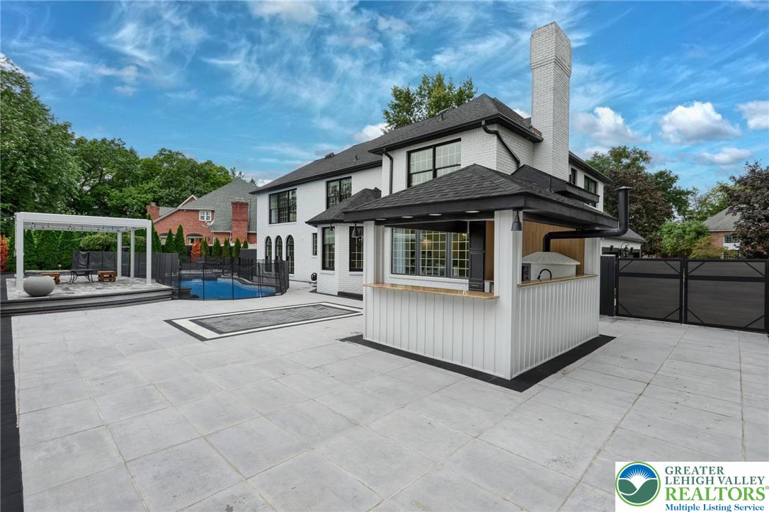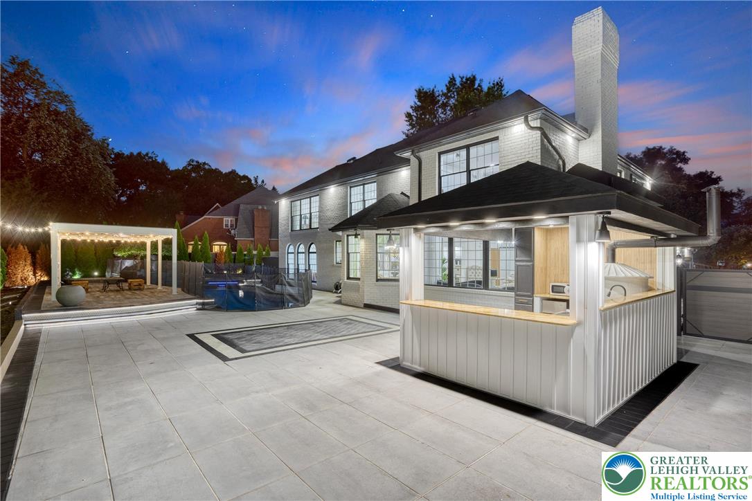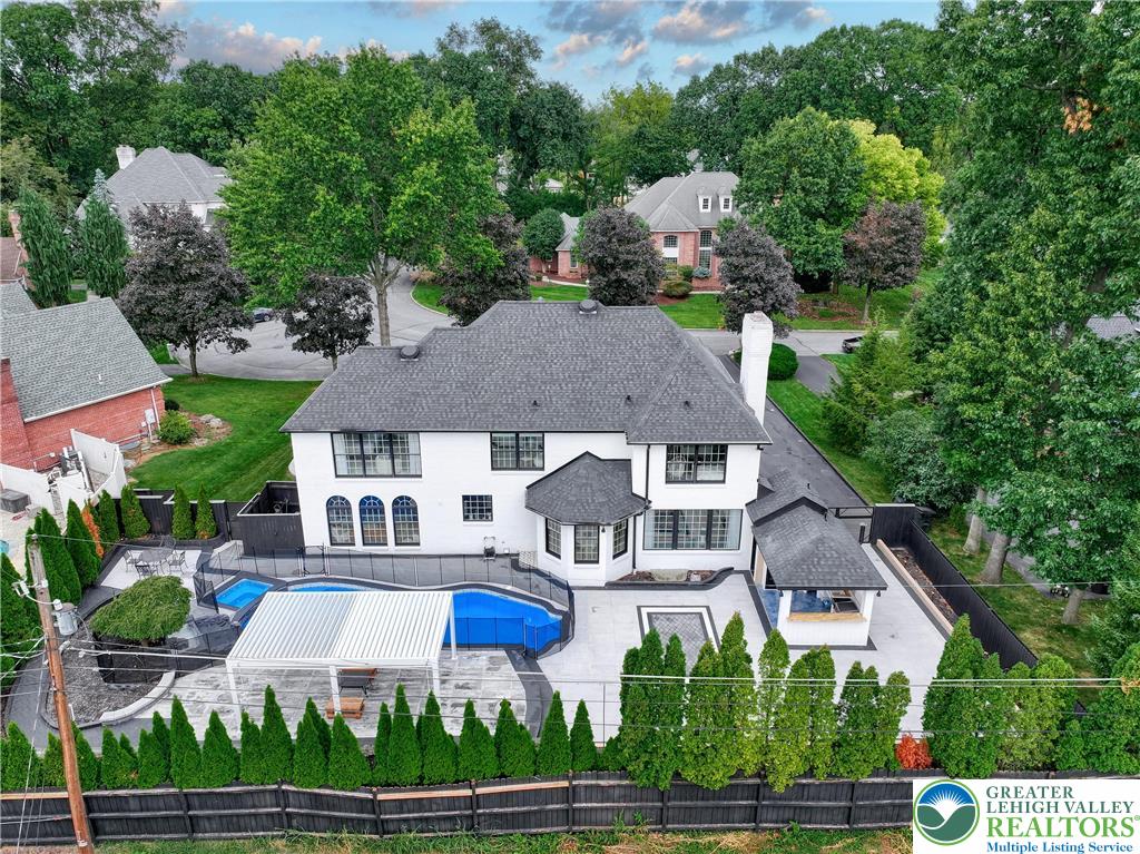 This fully renovated & upgraded 5-bed, 5.5-bath luxury home blends elegance & functionality. Freshly painted inside, 3x exterior stain & professionally landscaped, it feat HW flrs, recessed lts, & shadow box accents throughout the main level. Enjoy a private office w/French doors & illuminated built-ins, a formal dining room w/accent wall, & a living room w/Palladian windows. The spacious family room includes built-in shelving & a gas fireplace. The chef's kitchen boasts stainless steel apps, granite counters, tiled backsplash, wall oven, electric cooktop on the center island, & pendant lighting. A full bath on the 1st floor is ideal after using the pool, alongside a laundry room & 1/2 bath. The owner's suite includes oversized windows, walk-in closet, & a spa-like en-suite w/freestanding tub, dual vanities, & tiled walk-in shower. All bedrooms offer walk-in closets; the princess suite also features a vaulted ceiling & private bath. A hallway bath includes dual sinks & tiled shower/tub combo. The finished basement offers a sitting area, updated kitchenette, media room, guest bedroom, & luxurious full bath. Outside, enjoy a fully fenced yard w/mature privacy trees, paver patio w/tile inlay, new pergola, covered kitchenette w/Hardy panel finishes, & an in-ground pool w/waterfall feature. Covered front porch & 3-car garage w/extra-long driveway complete this spectacular home. Close to US-22 & PA-378, Bethlehem Golf Club, Lehigh Valley Int'l Airport, shops, restaurants & more!